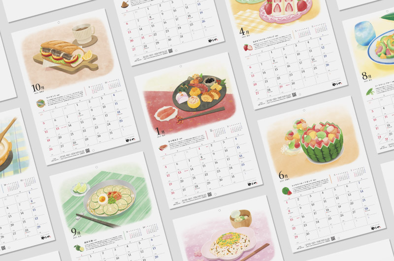 「九州のワクワクする食文化を日本、そして世界へ。」というやまや様のポリシーをもとに、九州の旬を楽しむ季節の味わいをテーマに制作。旬の食材やその地域ならではの食べ方で楽しまれている九州各地の味わい深い品々をピックアップ。リアルだけど温かみがあり、めくった瞬間「おいしそう!」と思っていただけるようなイラストタッチで展開しました。