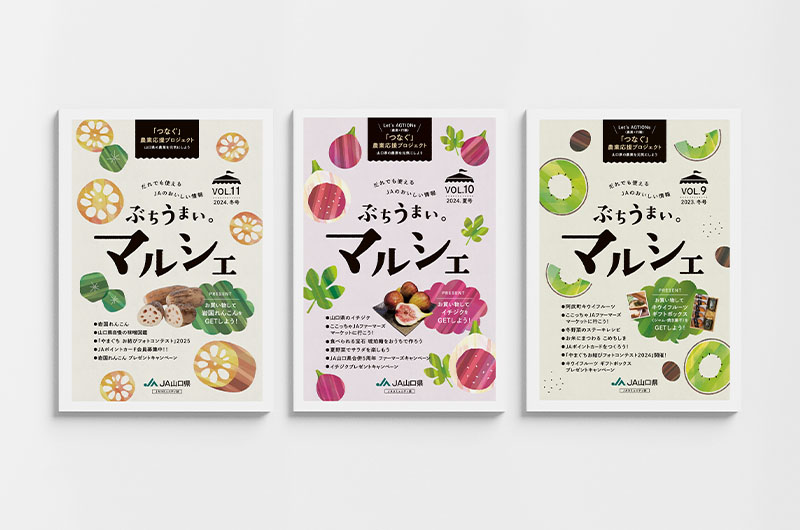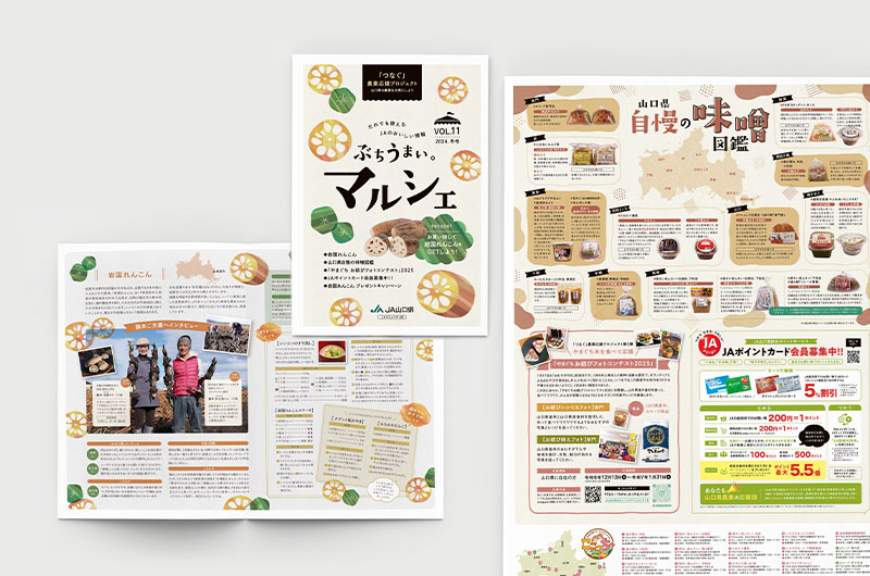 夏と冬の年2回、JA山口県様が発行しているコミュニティ誌。毎号、山口県の特産品の知識やレシピ、生産者の紹介やインタビュー記事など、さまざまな特集を掲載。発行を楽しみにしてくれているお客様も多い。