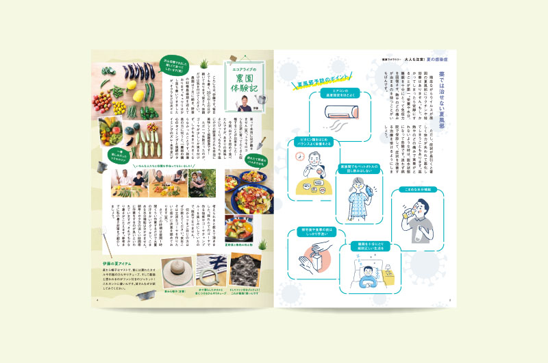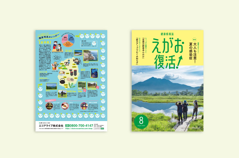 健康食品、化粧品、食品などを販売されているエコアライブ様が毎月発行している会員誌。特集、レシピ、エクササイズ、パズルやクイズ、お便り紹介など充実した内容で会員さまとの架け橋になれるような紙面づくりを心がけています。