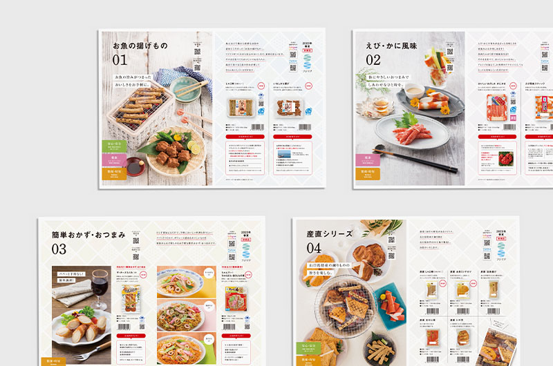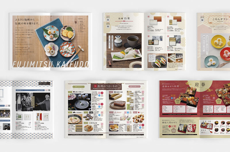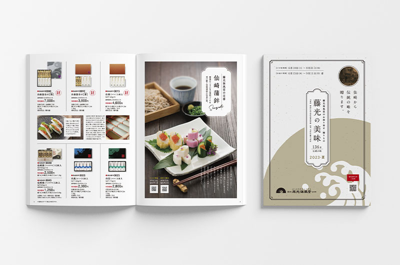 山口県長門市にある老舗の蒲鉾メーカー。近年は食の創造企業として様々な商品を全国各所に卸している。バイヤー向けの新商品カタログや「藤光海風堂」ブランドでのお中元・お歳暮DMデザインを撮影から含めて対応。展示会に使用する販促用のリーフレット等もデザイン。