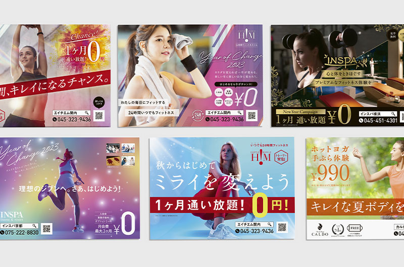 フィットネスクラブやホットヨガスタジオなどの運営を手掛ける企業。「INSPA」、「CALDO」、「Mapila」、ポスター・フライヤー・LPなどをデザイン。